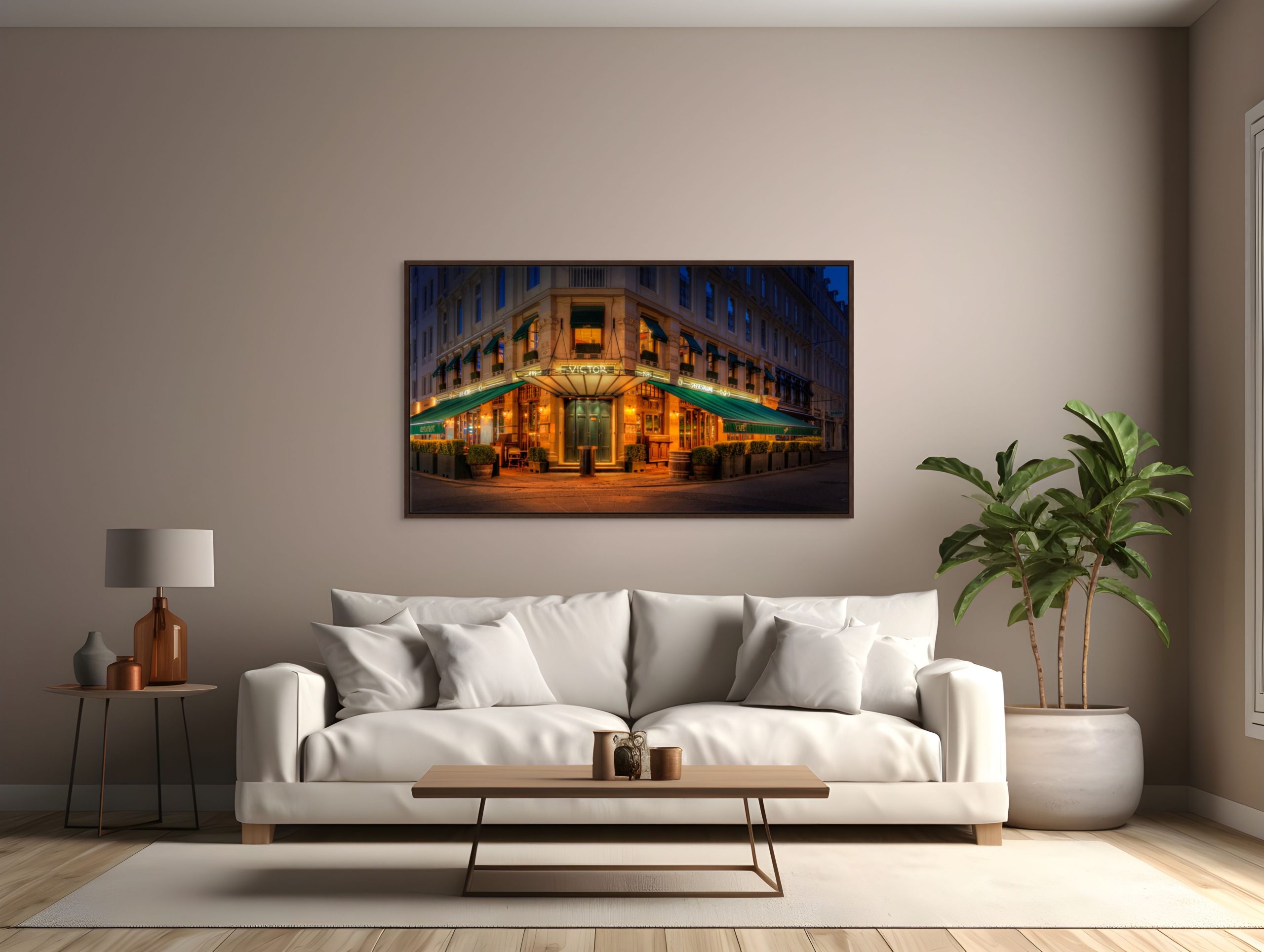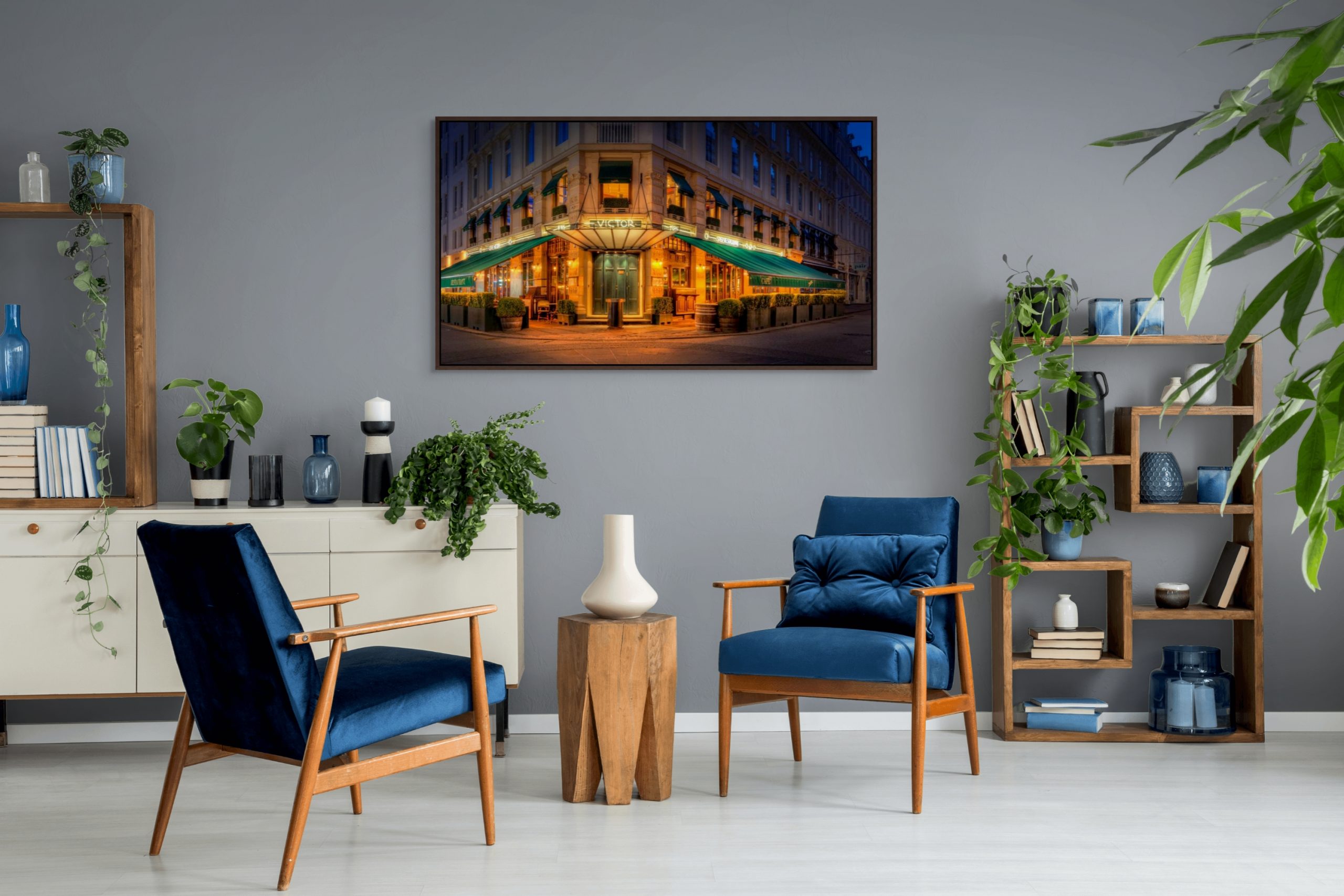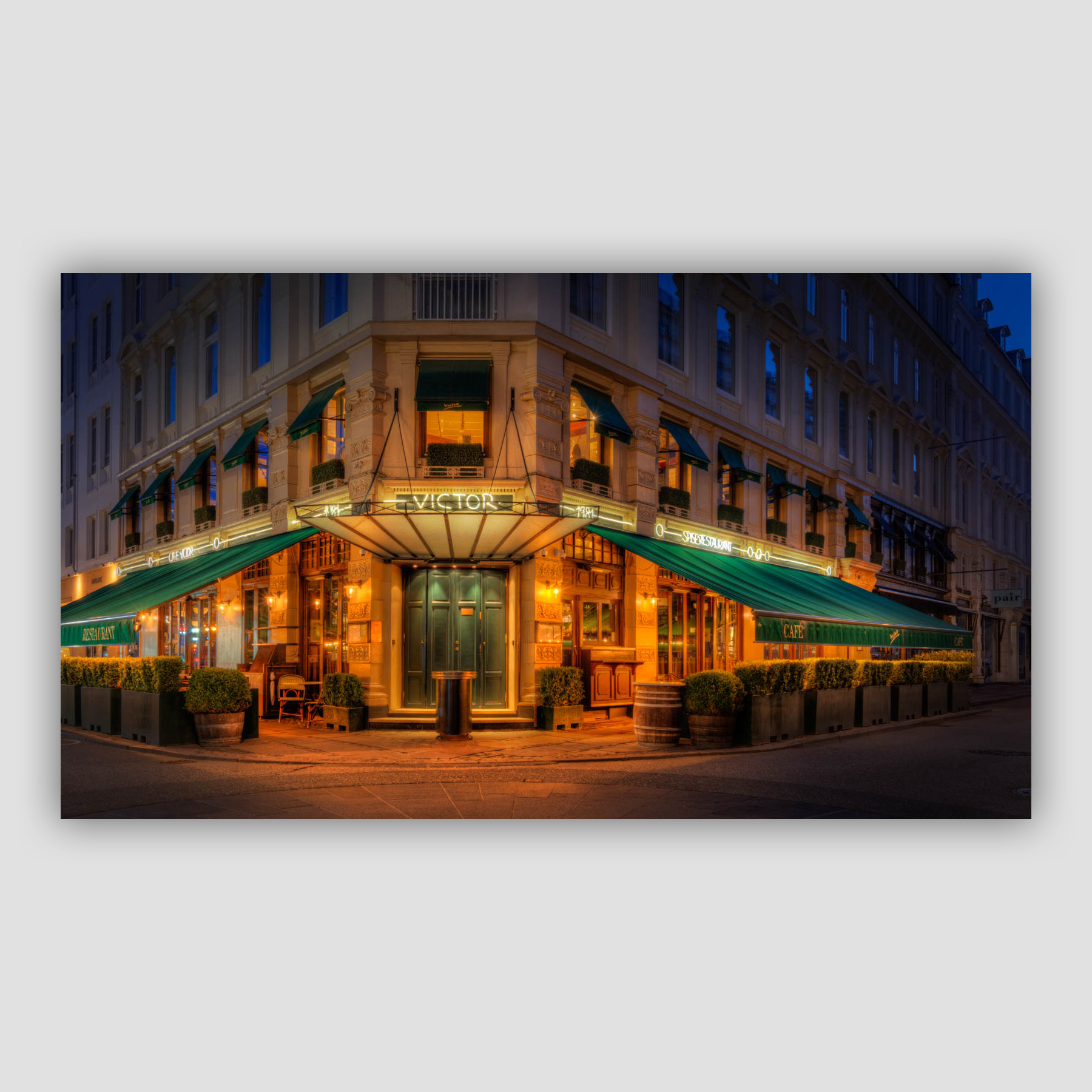 Det originale kunstværk “Cafe Victor” leveres signeret og nummereret i Limited Edition. Rammen er lavet på snedkeri i Danmark af en professionel rammebygger.
