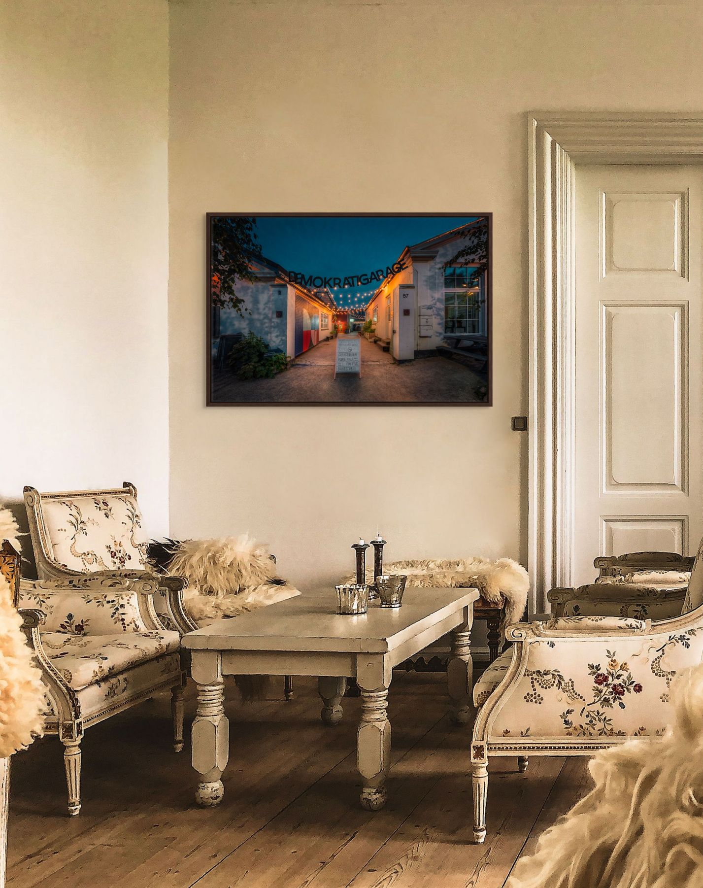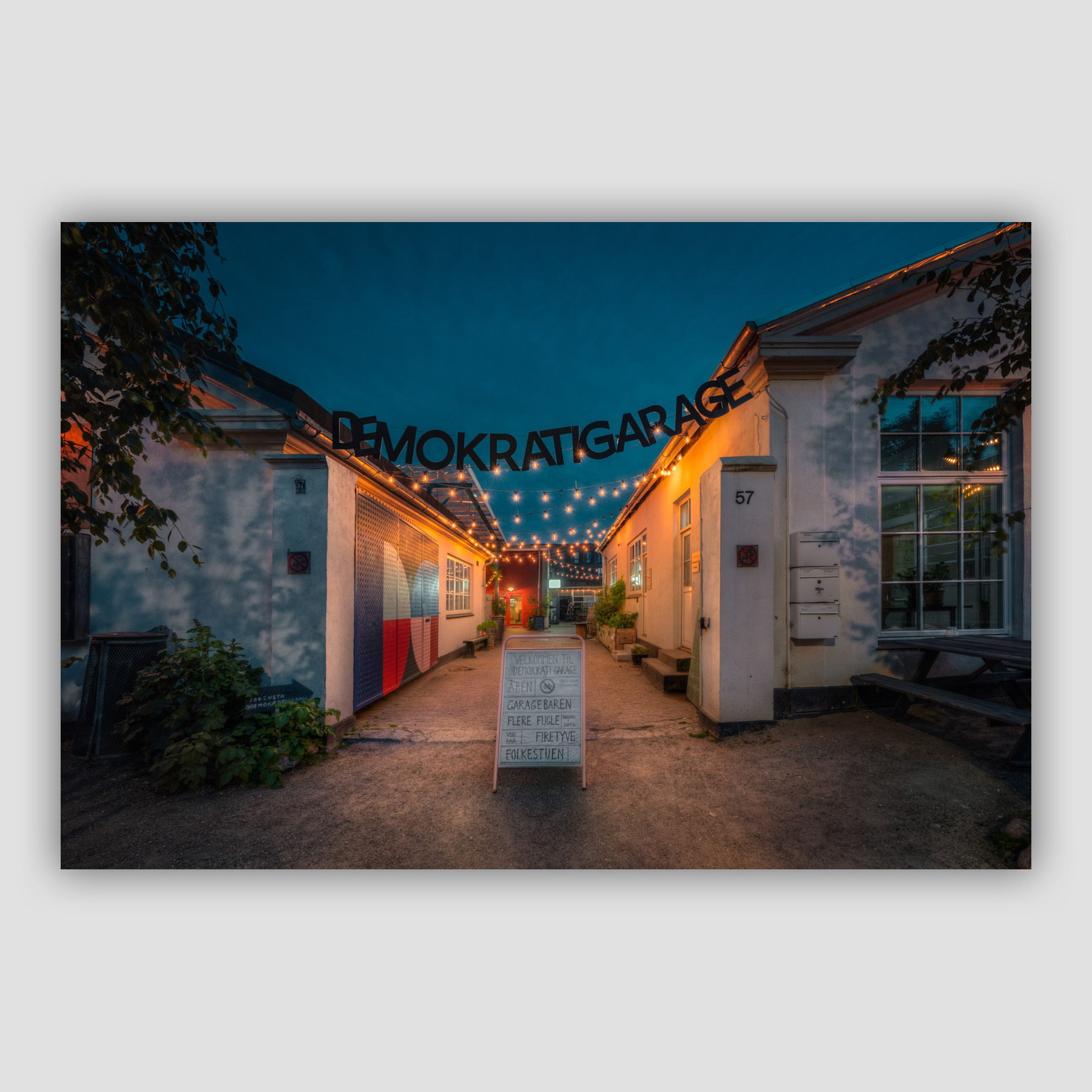 “Garage of Democracy” er dansk fotokunst, der leveres signeret og nummereret i Limited Edition. Rammen er håndbygget og lavet på snedkeri i Danmark.